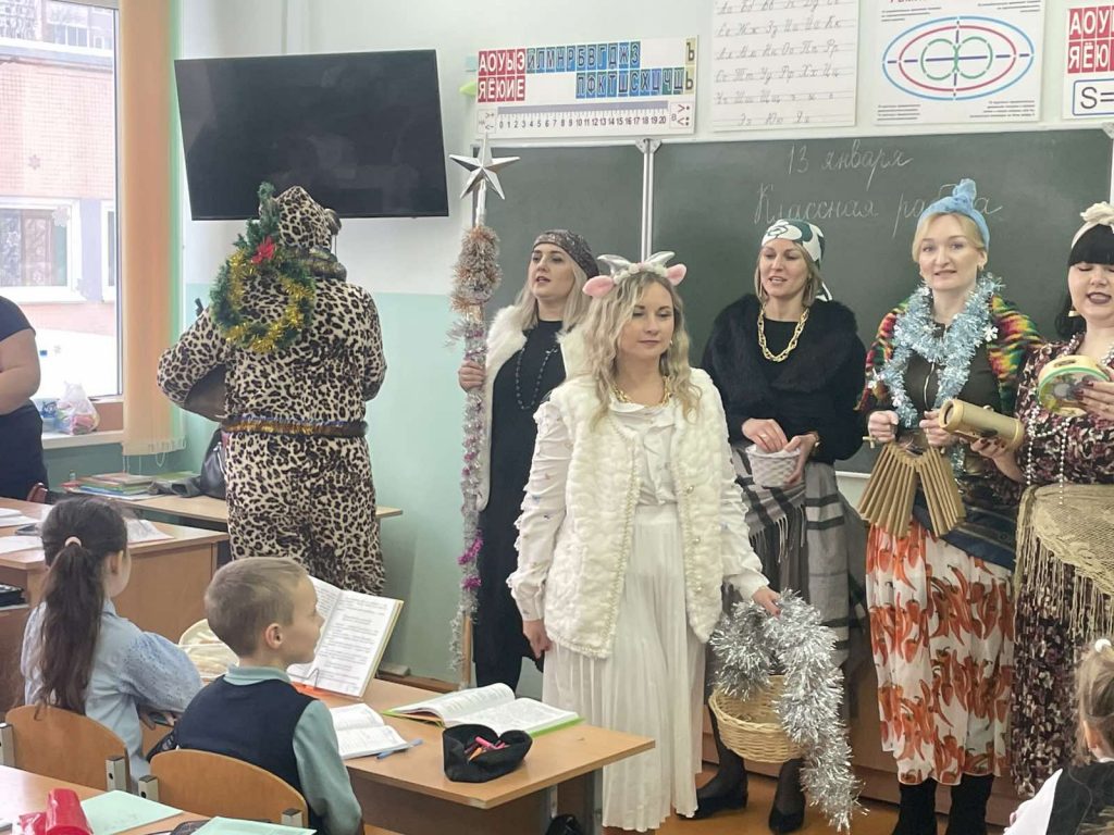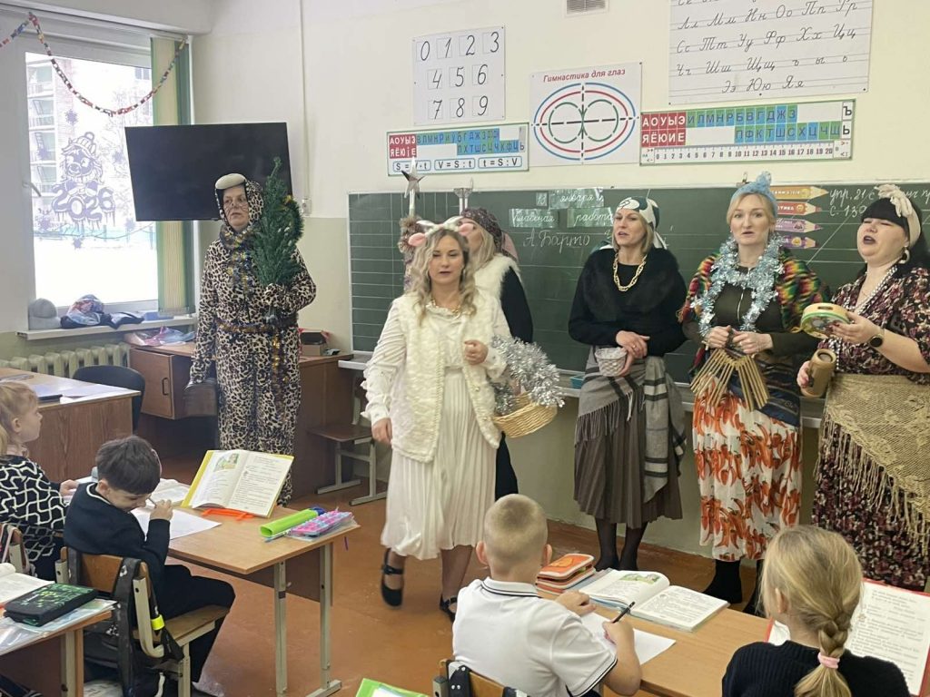 🎶 Учителя начальной школы подготовили традиционные песни, костюмы и мини‑представления, радуя учащихся и учителей.