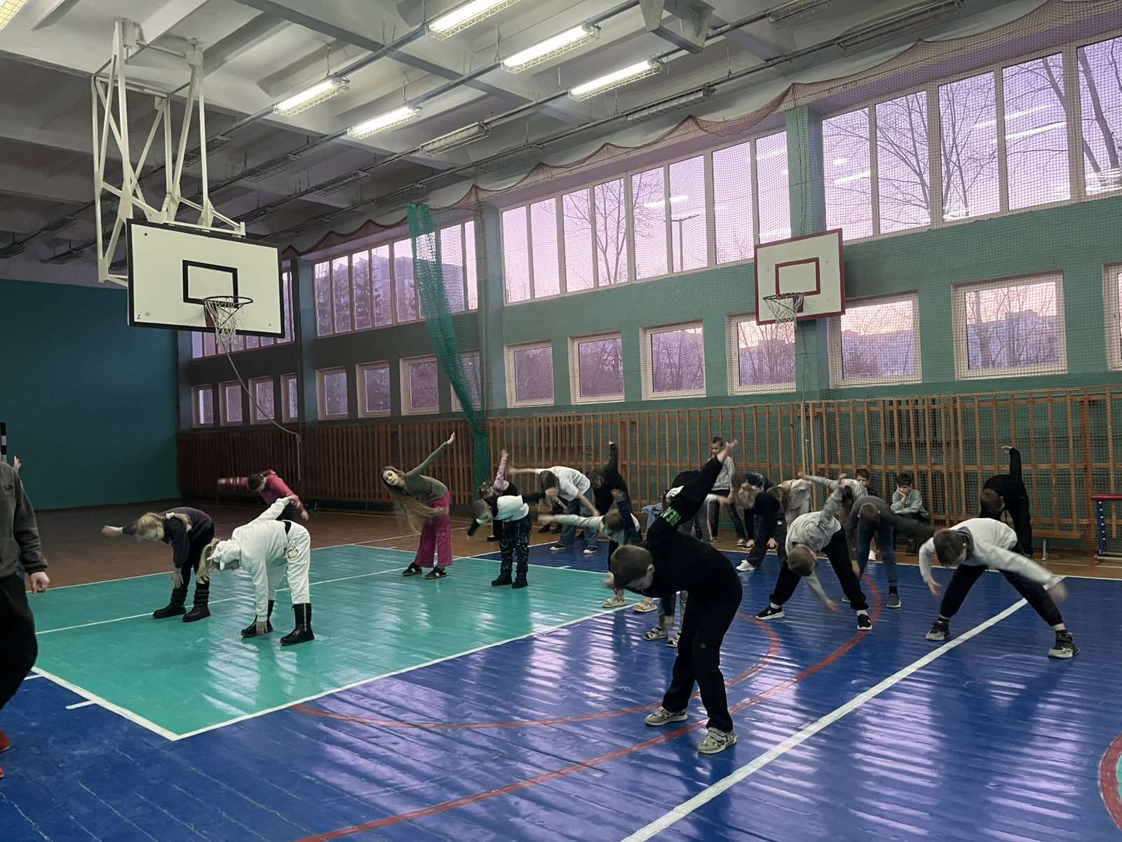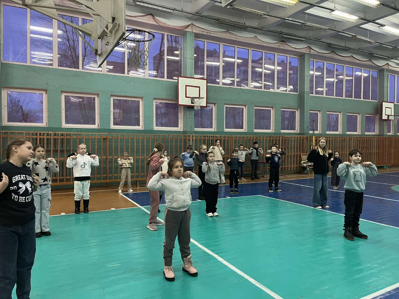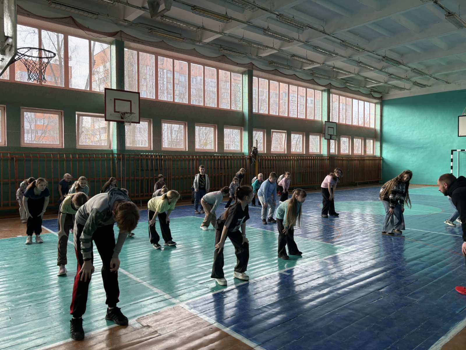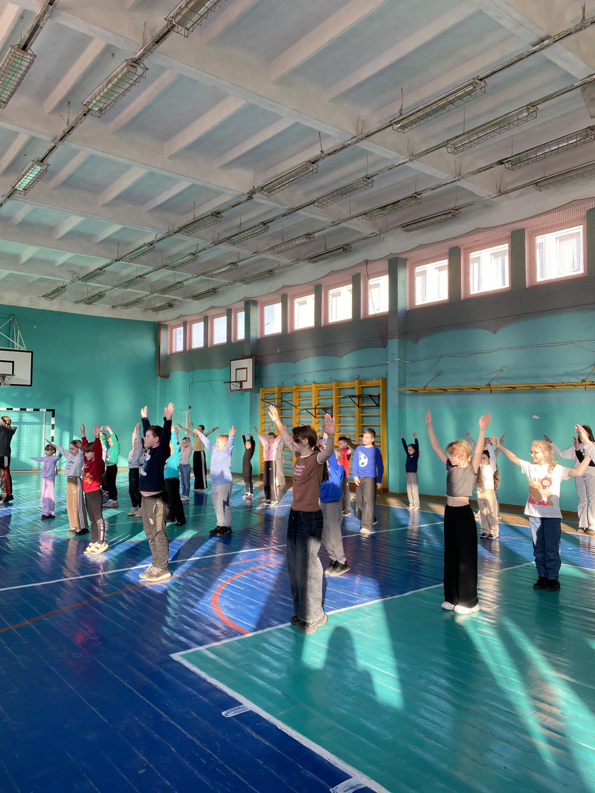 Утро началось с традиционной встречи детей и знакомства с планом мероприятий на день. Зарядка «Весенний зоопарк», проведённая учителем физической культуры Свистуновым Р.А., подарила ребятам бодрость и хорошее настроение.