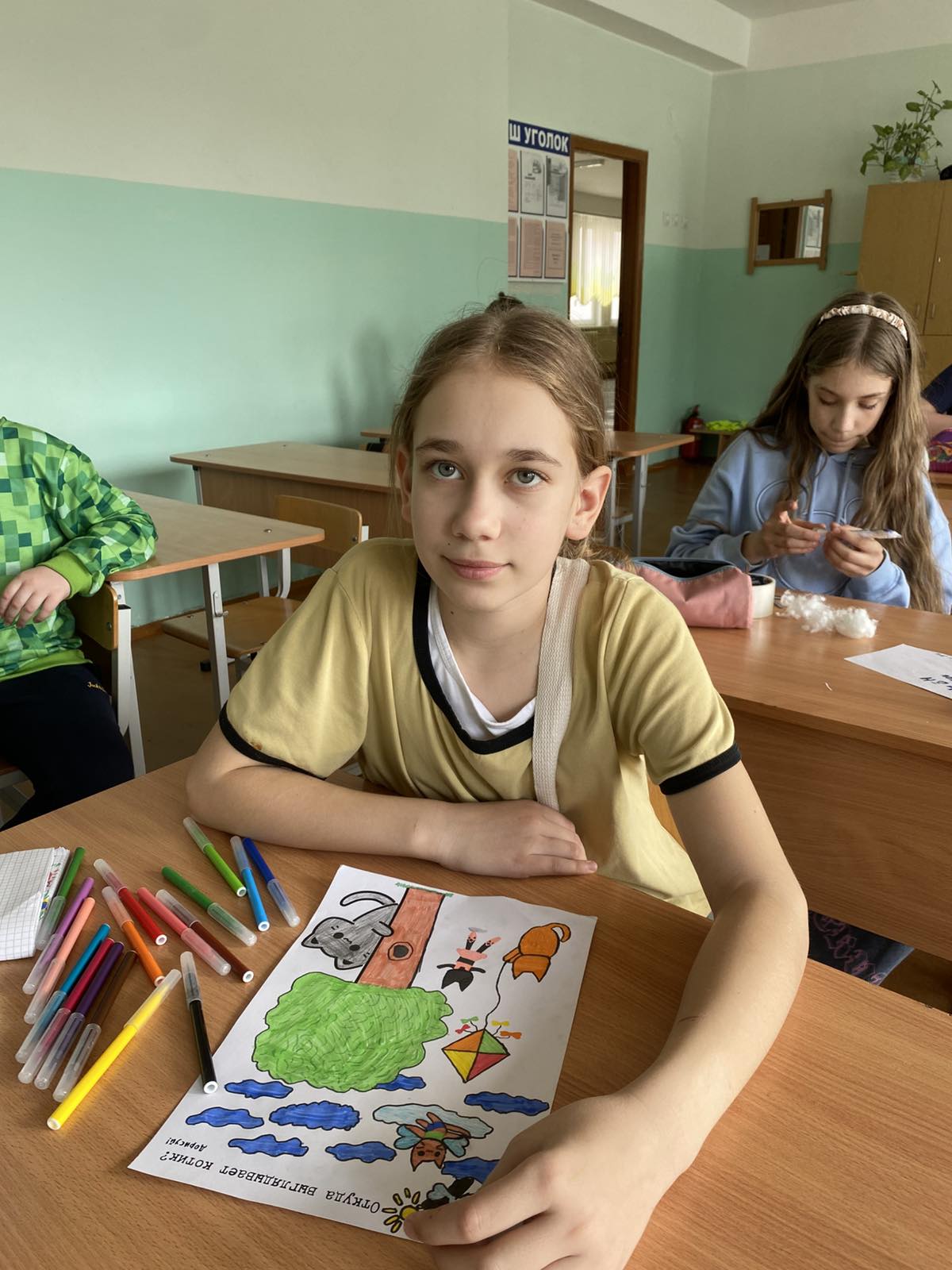 Ярким событием дня стало творческое занятие на свежем воздухе «Рисуем на асфальте: любимые герои». Юные художники с большим энтузиазмом изобразили персонажей любимых сказок и мультфильмов. Асфальт перед школой расцвёл яркими красками, а каждый рисунок стал маленьким шедевром.