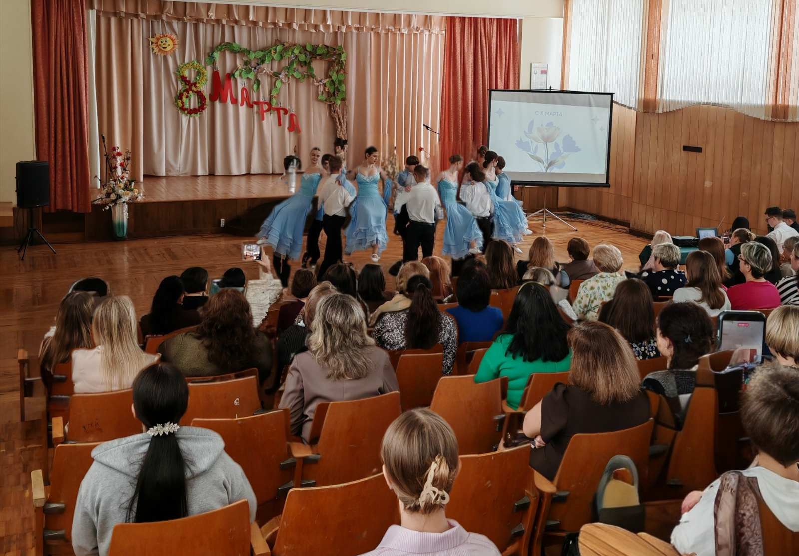 В предпраздничный день, 7 марта, наши ветераны труда приняли поздравления с праздником, были приглашены на концерт в родную школу. Тех ветеранов, которые не смогли посетить мероприятие, коллеги посетили на дому.