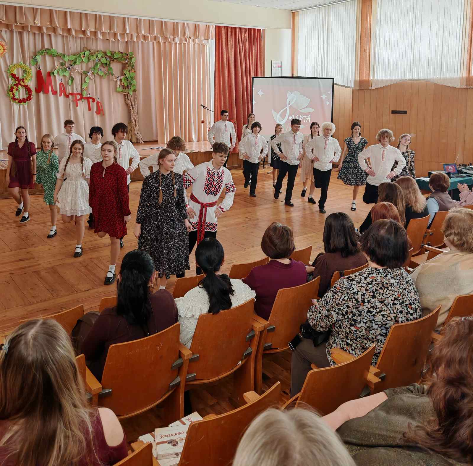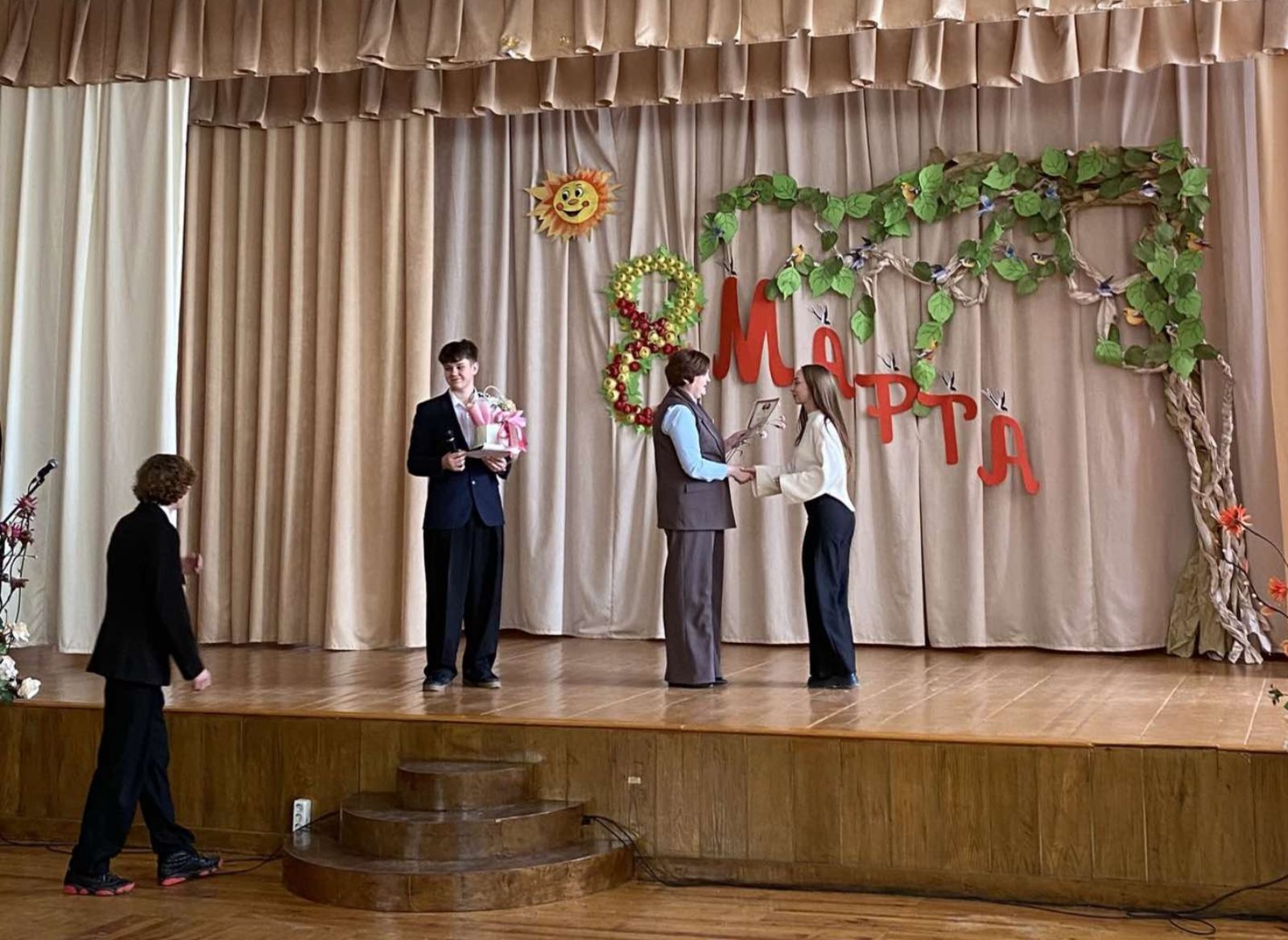 Концертно-поздравительная программа, посвященная Международному женскому дню,прошла в наше школе. Активисты поздравили всех женщин с наступающим праздником!
